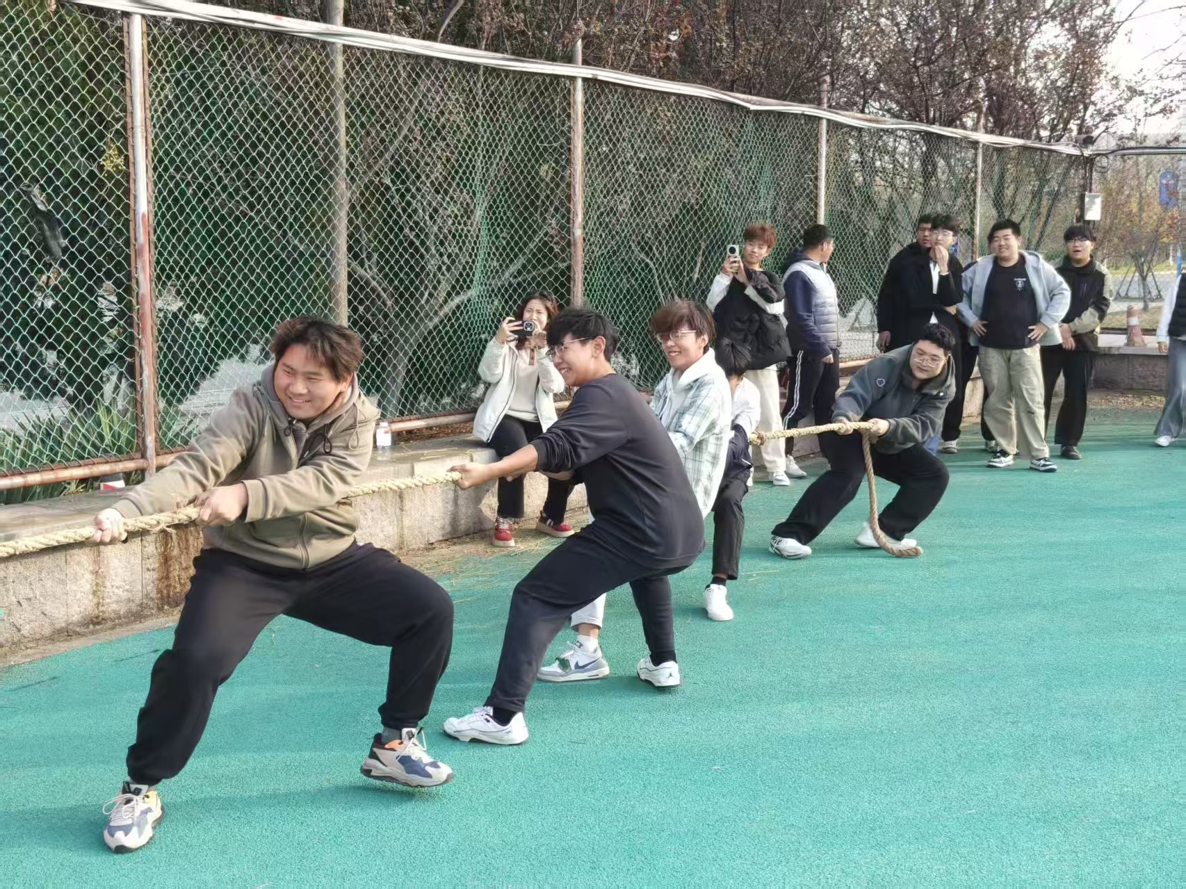 为增强体质、凝聚团队合力,促进班级间交流沟通,厚植体育运动与协作精神,11 月 15 日下午,QY千亿球友会于田径场举办 “凝心聚力,‘绳’采飞扬” 拔河比赛。24级、25级全体学生积极响应,满怀热忱踊跃参与。