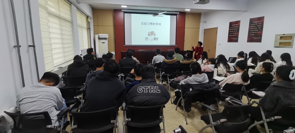 实验室安全无小事,良好习惯是根基。培训伊始,实验教学中心陈印平副教授结合近年高校实验室安全事故案例,重点阐释实验室习惯养成的重要性。从实验器皿规范摆放、试剂分类储存,到实验操作流程合规化、实验后卫生清洁常态化,陈老师细致拆解日常实验中易忽视的习惯漏洞,强调“细节决定安全,习惯守护防线”。通过典型案例复盘,师生深刻认识到,违规操作、随手堆放等不良习惯是引发安全事故的重要诱因,只有将安全习惯内化于心、外化于行,才能从源头防范安全风险。