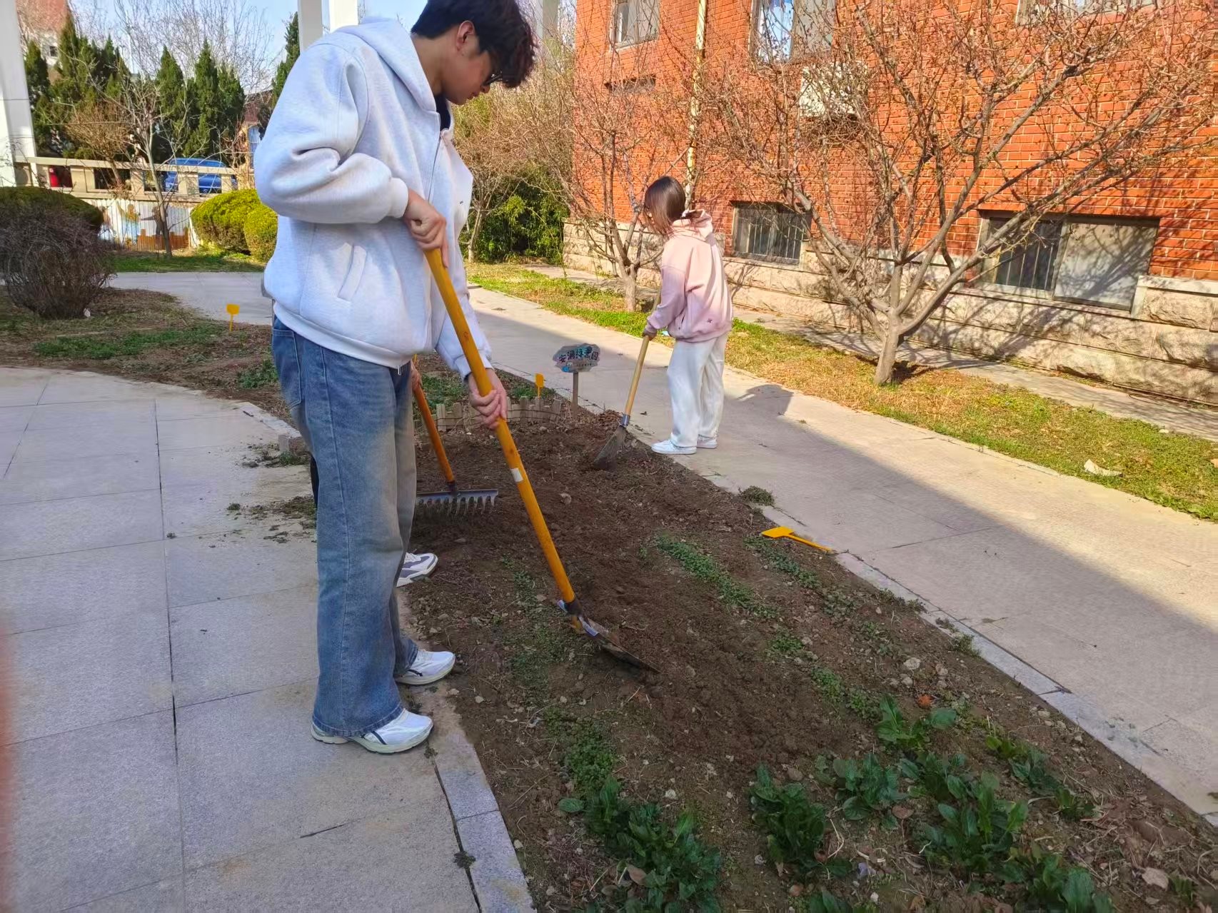 活动开始后,学生们按分工在部长带领下前往种植区域,有序开展劳动实践。松土、播种、浇水、制作创意盆栽等项目依次进行,大家齐心协力、配合默契。经过一个多小时的劳作顺利完成播种,在泥土芬芳中舒缓身心,以青春热情投身劳动,现场氛围温暖治愈。